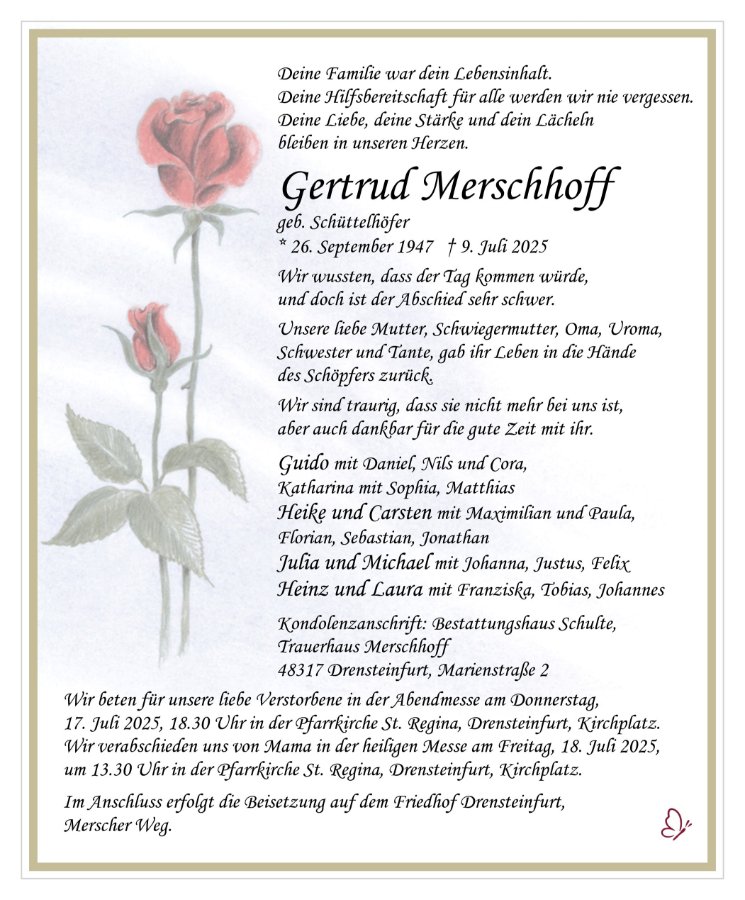 geboren am 26. September 1947 gestorben am 9. Juli 2025