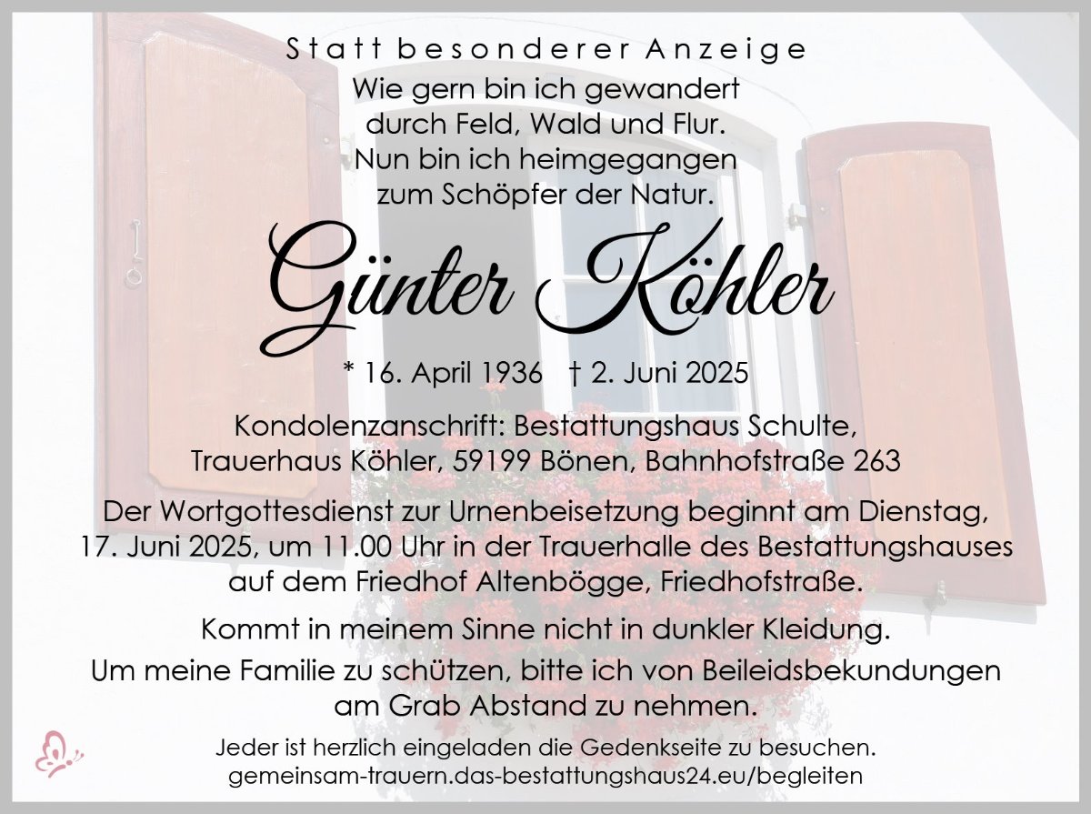 Ruhe in Frieden und in der Natur lieber Günter Köhler