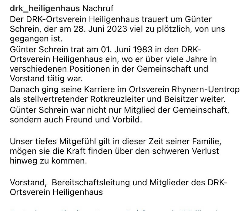 Unser tiefes Mitgefühl gilt in dieser Zeit der Familie von Günter Schrein, mögen sie die Kraft finden, über diesen schweren Verlust hinweg zu kommen.