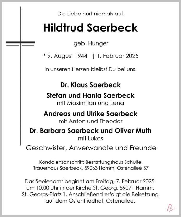 Unser aufrichtiges Beileid zum Verlust Ihrer Frau, Eurer Mutter und Großmutter. Wir haben es erst vor kurzem erfahren, aber unsere Gedanken werden Euch in der Zeit der Trauer begleiten.