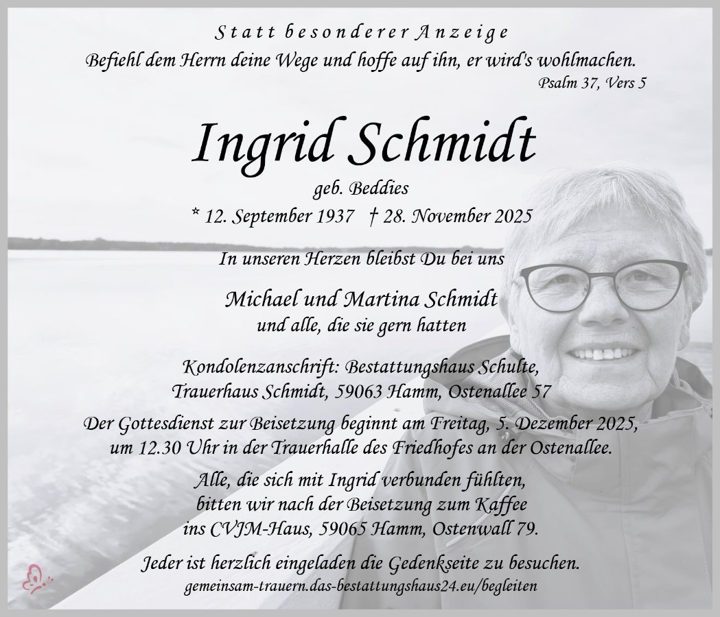 Auch für mich bleiben viele schöne Erinnerungen an Eure Mutter, Eure Familie und unsere Kindheit am Ostenwall. Ich bin sehr dankbar, dass ich vor einigen Jahren Eure Mutter noch einmal begegnen durfte und mich lebhaft mit ihr an diese Zeit erinnern durfte. Das hat mich sehr bewegt.