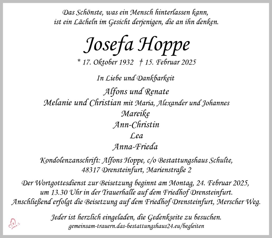 Josefa Hoppe geb. Bierbaum