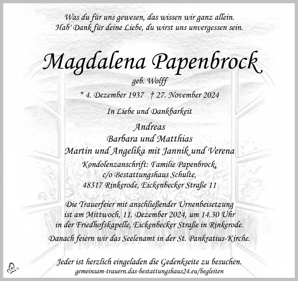 geboren am 4. Dezember 1937 gestorben am 27. November 2024