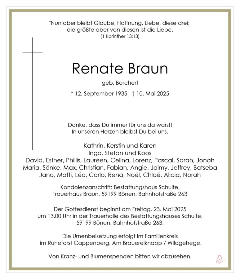 wir wünschen Ihnen von Herzen viel Kraft, dass Sie Menschen um sich haben, die Ihnen in dieser schweren Zeit beistehen und Halt geben. Zusätzlich können Sie auf dieser Gedenkseite Erinnerungen teilen und so das Andenken gemeinsam wachhalten.